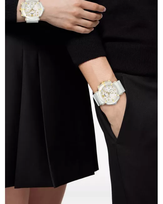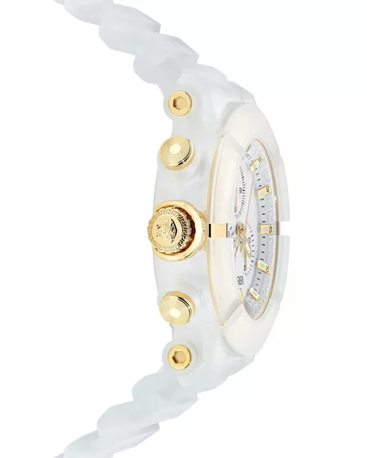white dial round case shape 45mm case size chronograph dial gold-tone Medusa head dial features gold-tone bezel features quartz movement date window water resistance up to 50m/5 ATM This item comes with a standard one-year warranty from the boutique.