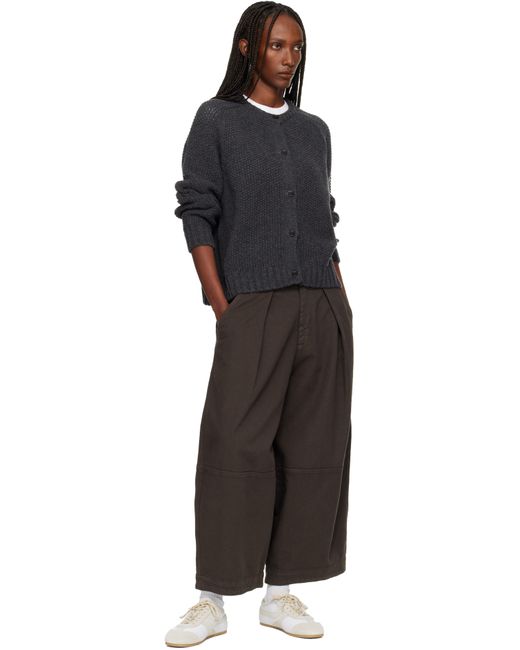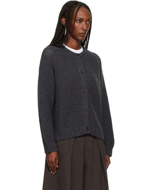 Knit extrafine merino wool cardigan. · Seamless construction · Rib-knit crewneck, hem, and cuffs · Button closure · Saddle shoulders · Corozo hardware Supplier color: Charcoal