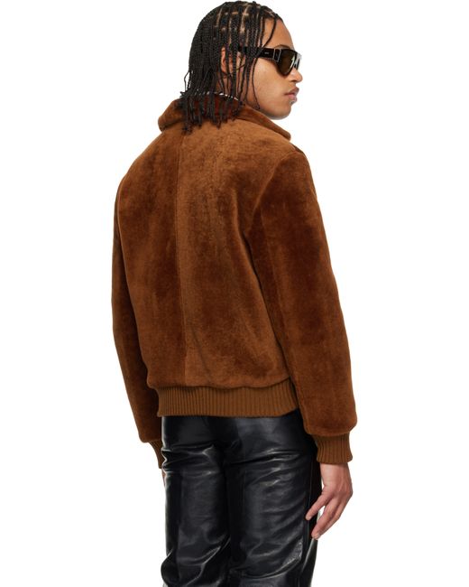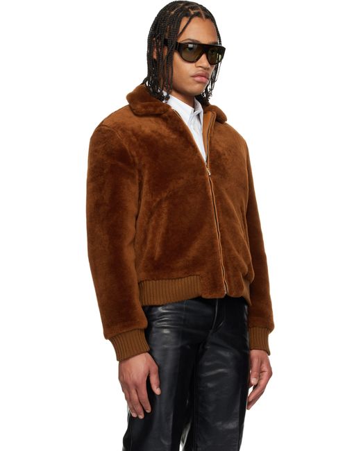 Shearling jacket. · Spread collar · Zip closure · Welt pockets at front · Rib-knit hem and cuffs · Full satin lining Supplier color: Rust shearling