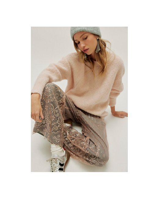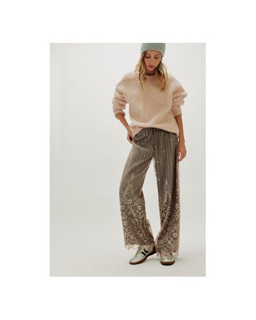 A comfy silhouette combined with so-special, quintessentially-FP details-this pair of pull-on pants is featured in a relaxed drawstring style with a sheer, sparkling nylon overlay for an expected twist. * Mid-rise * Adjustable drawcord waist * Nylon overlays with glittering pattern * Scalloped trim * Lined FP One Aiden Sparkle Pants at Free People in Charcoal, Size: XS