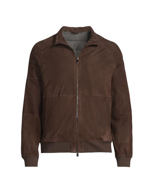 This Corneliani jacket is crafted of buttery suede in Italy. Spread collar Long sleeves Front zip closure 100% leather Lining: 100% cotton Dry clean Made in Italy SIZE & FIT About 24" from shoulder to hem Model measurements: 6'2" tall, 40" chest, 31" waist Model is wearing a US size Medium. Men Luxury Coll - Corneliani Clothing > Corneliani > Saks Fifth Avenue. Corneliani. Color: Brown. Size: 38.