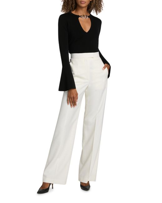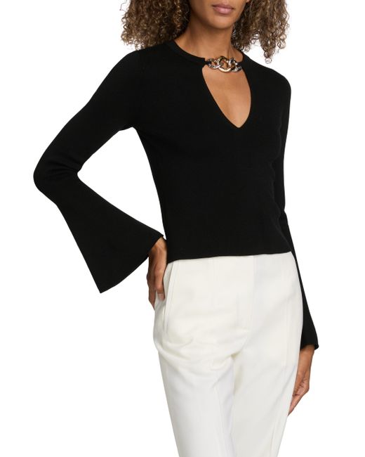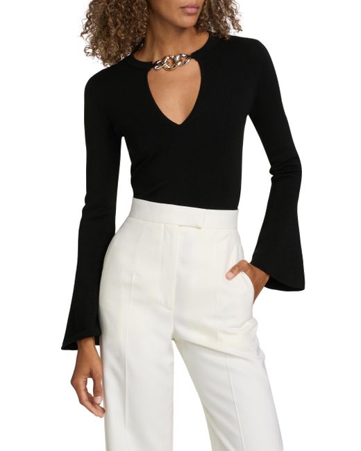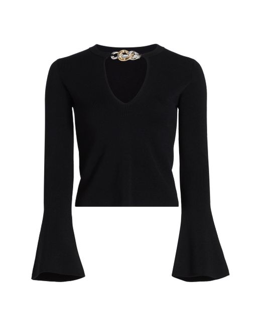 SIMKHAI's Evren sweater is made of soft wool and styled with a hardware detail at the V-neck. V-neck Long sleeves Pulls over 100% wool Dry clean Imported SIZE & FIT About 19.5" from shoulder to hem Model measurements: 5'10" tall Model is wearing a US size Small. Contemporary Sportswear - Workshop > Simkhai > Saks Fifth Avenue. SIMKHAI. Color: Black. Size: Small.