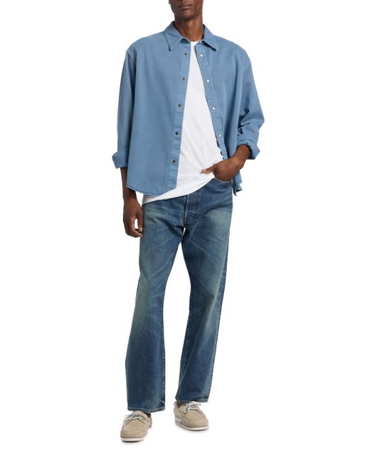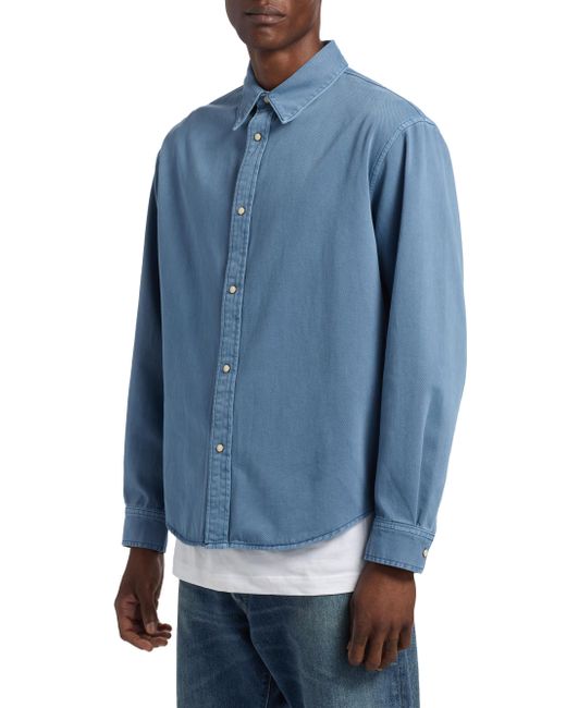 Crafted of cotton, this long-sleeve shirt from Frame is designed with a point collar, button barrel cuffs, and a button-front placket. Point collar Long sleeves, button barrel cuffs Button-front closure 100% cotton Machine wash Imported SIZE & FIT About 29" from shoulder to hem Model measurements: 6'2" tall, 40" chest Model is wearing a US size Medium. Mens Denim & Contemp - Contemp Denim And Bottom > Frame > Saks Fifth Avenue. Frame. Color: Slate Blue. Size: Small.