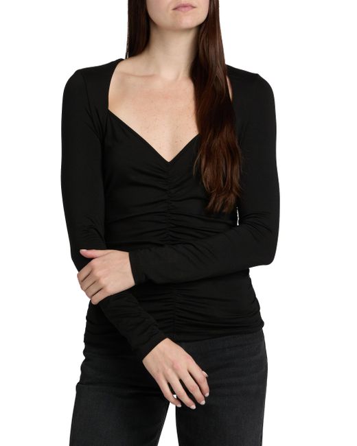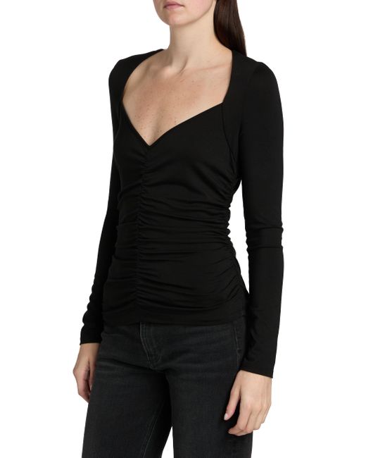Crafted of stretch jersey, Veronica Beard's Salem top is styled with a sweetheart neckline and ruched bodice. Sweetheart neckline Long sleeves Pulls over 90% lyocell/10% elastane Machine wash Imported SIZE & FIT About 22" from shoulder to hem Model measurements: 5'10" tall Model is wearing a US size Small ABOUT THE BRAND Veronica Beard was founded by sisters-in-law Veronica Miele Beard and Veronica Swanson Beard in 2010. With a strong belief in enduring personal style, the co-designers focus on elevated everyday pieces, like their signature structured blazers and easy-chic dresses. Contemporary Sportswear - Denim And Bottoms > Veronica Beard > Saks Fifth Avenue. Veronica Beard. Color: Black. Size: XS.