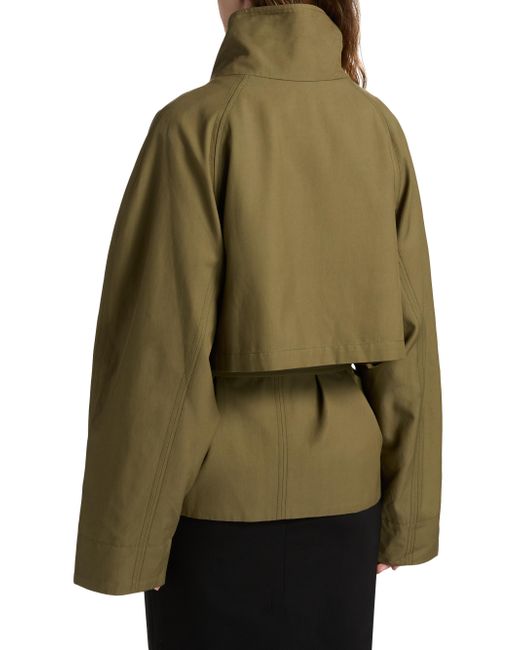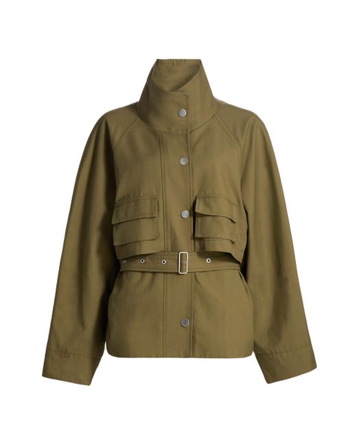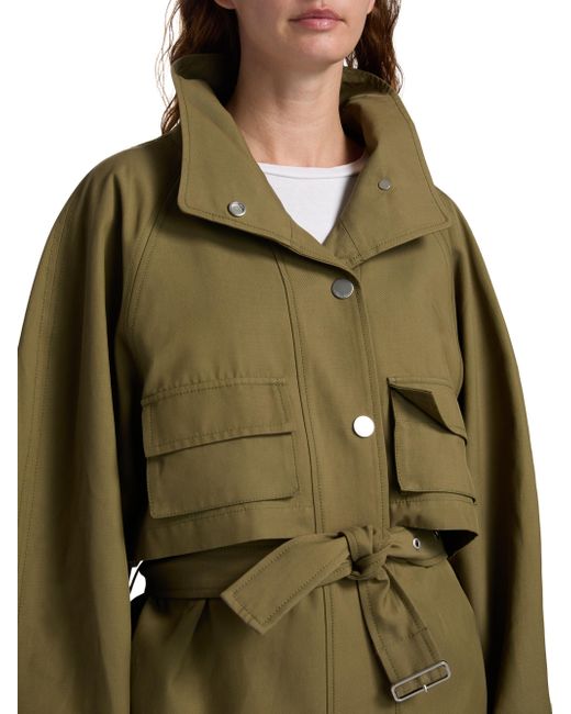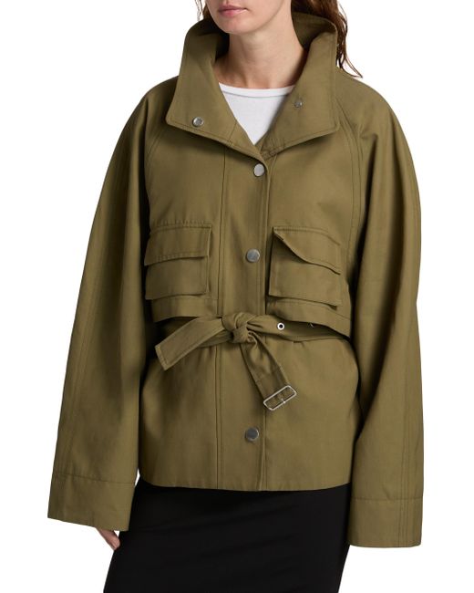 This utility-style jacket from 3.1 Phillip Lim is crafted of cotton-blend twill and cut to a generous silhouette with a belt for shape. Stand collar Long raglan sleeves Chest flap pockets Belted Concealed zip front, snap closure 55% cotton/45% viscose Dry clean Imported SIZE & FIT About 26.5" from shoulder to hem Model measurements: 5'10" tall Model is wearing a US size Small. Contemporary Sportswear - Workshop > 3.1 Phillip Lim > Saks Fifth Avenue. 3.1 Phillip Lim. Color: Caper. Size: XS.