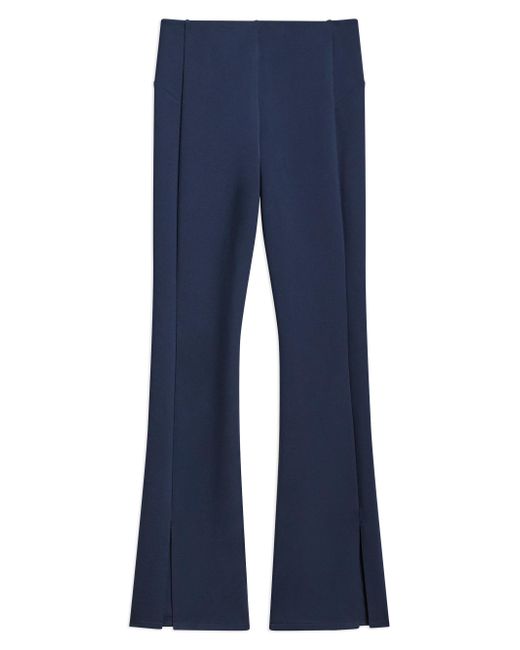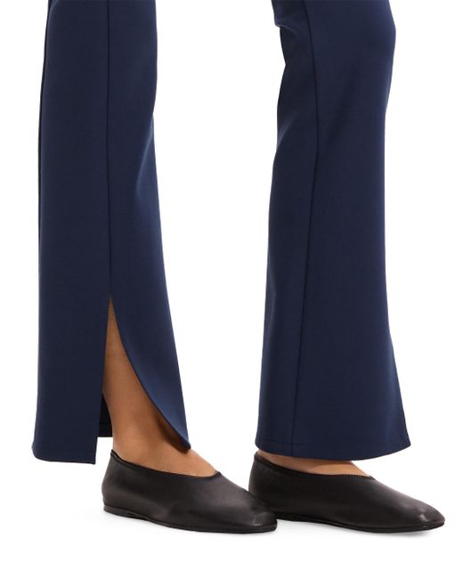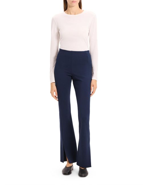 These flared pants from Theory feature a sleek fit with a back yoke detail, flared legs, and slit cuffs. Slit cuffs Pulls on 65% viscose/30% nylon/5% spandex Dry clean Imported SIZE & FIT Rise: about 14" Inseam: about 32" Leg opening: about 16" Model measurements: 5'10" tall Model is wearing a US size Small ABOUT THE BRAND In 2000, founders Andrew Rosen and Elie Tahari launched Theory with a focus on innovative, comfortable stretch pants for women. Since then, the New York-based brand has become well-known for its mastery of polished, well-tailored separates for women and men. Contemporary Sportswear - Theory Sportswear > Theory > Saks Fifth Avenue. Theory. Color: Nocturne Navy. Size: XS.