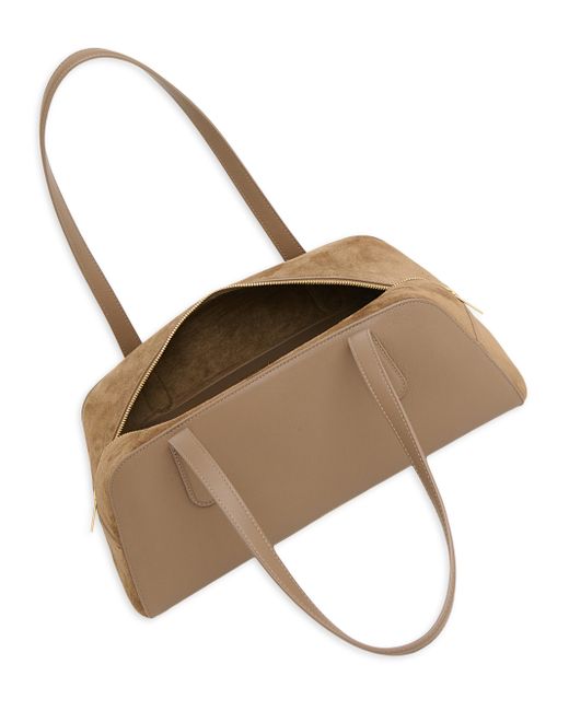 Crafted of grained Italian leather and suede, the Helios shoulder bag from Mansur Gavriel is designed with goldtone hardware and two shoulder straps. Two shoulder straps Dust bag Top zip closure Leather/suede Made in Italy SIZE About 13.7"W x 6"H x 6"D Two shoulder straps: about 10.2" drop. Handbags - Contemporary Handbags > Mansur Gavriel > Saks Fifth Avenue. Mansur Gavriel. Color: Anise.
