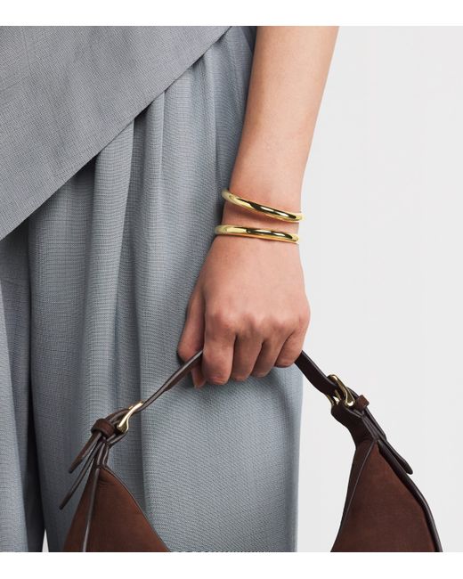 Elevating your wrist stack with its glossy lustre, the Maggie cuff bangle by liÉ studio strikes the perfect balance between statement and refinement. Its curvaceous form provides the illusion of stacked bracelets - though the piece moves as one - offering versatility and minimalist ease of wear. Bright and buttery, it ensures your ensemble stays warm this winter.