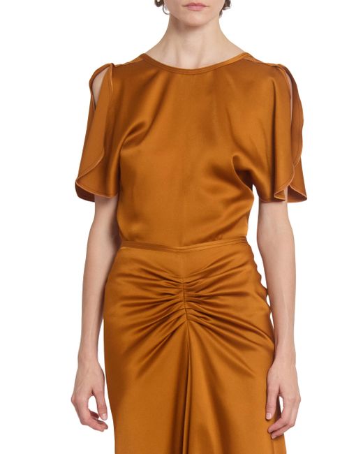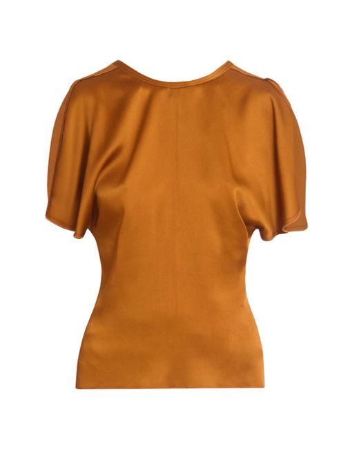 This Victoria Beckham top is crafted of satin and styled with a V'd back. Round neck V'd back Short sleeves Back zip closure 71% acetate/29% viscose Dry clean Made in Portugal SIZE & FIT Model measurements: 5'10" tall Model is wearing a US size 4. Designer Lifestyle - Victoria Beckham > Victoria Beckham > Saks Fifth Avenue. Victoria Beckham. Color: Bronze. Size: 8.