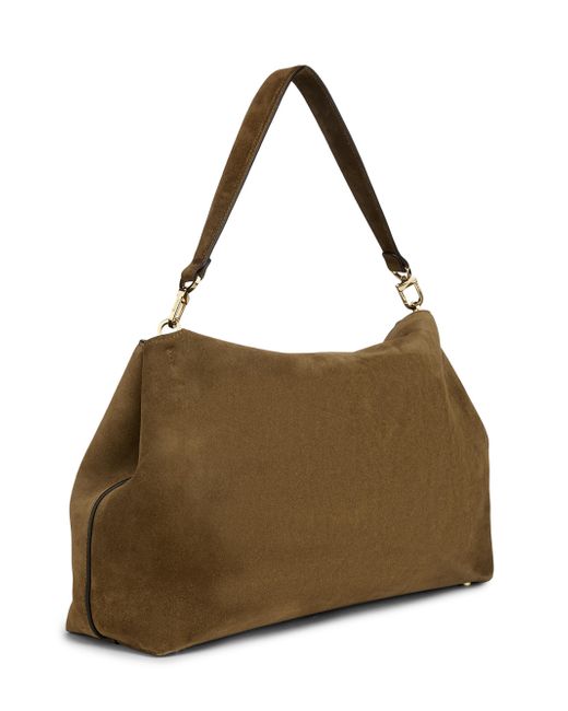 From the T-Lock Collection. Designed with a deconstructed silhouette envisioned for everyday use, this T-Lock satchel from Toteme is crafted of soft Italian suede and finished with a goldtone T-lock. The piece includes a removable and adjustable shoulder strap and a detachable top handle for versatile wear. Includes one removable and adjustable shoulder strap and one removable top handle Interior: two slip pockets Flap T-lock closure Care instructions and dust bag included 100% suede Lining: 60% polyurethane/40% polyamide Made in Italy SIZE Top handle drop: about 8" Shoulder strap drop: about 15.25" (adjustable) About 16"W x 10.25"H x 5.5"D. Handbags - European Collection Hdba > Toteme > Saks Fifth Avenue. Toteme. Color: Dark Taupe.