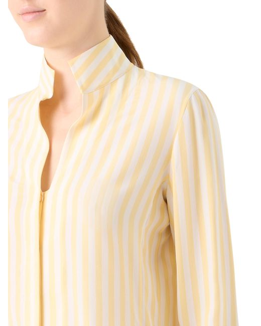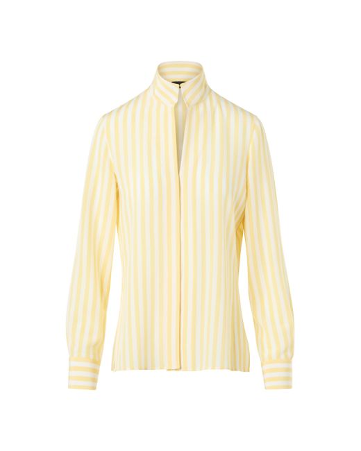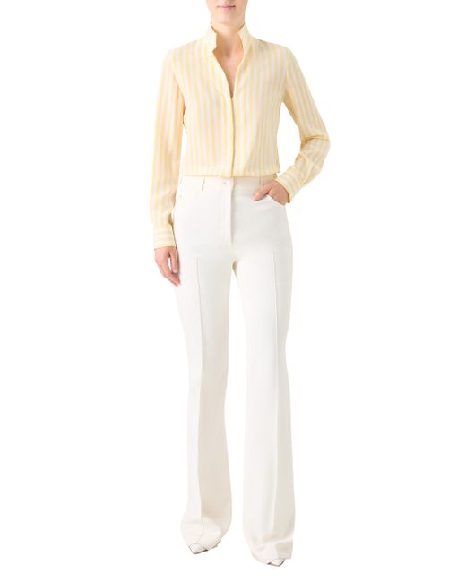 Crafted of silk crêpe, Akris' striped blouse is tailored with a stand collar, side slits, and long sleeves with button cuffs. Stand collar Long sleeves, button cuffs Side slits Button-front closure 100% silk Dry clean Imported SIZE & FIT Model measurements: 5'10" tall Model is wearing a US size 4 ABOUT THE BRAND Founded in 1922 in St. Gallen, Switzerland, the name Akris was derived from founder Alice-Kriemler Schoch's initials. The entrepreneurial designer first started designing dotted aprons with intricate embroidery and soft cotton, which quickly grew into a full line of ready-to-wear. Almost 100 years later, the brand is now helmed by her grandsons. Creative Director Albert Kriemler continues to pay homage to his grandmother through polka-dot lined clothing, luxe fabrications and modern design-which now include sleek accessories like the cult-favorite AI trapezoidal handbag. Advanced European - Akris > Akris > Saks Fifth Avenue. Akris. Color: Sun Ecru. Size: 6.