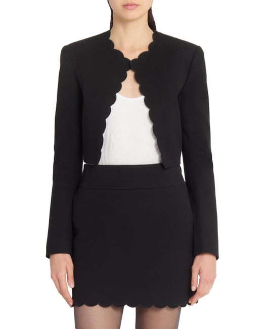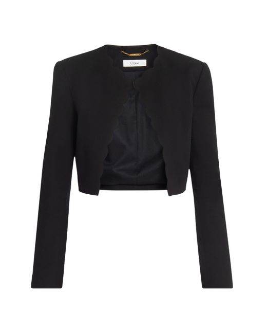 Crafted of stretch cotton, this Chloé slip-on blazer is enhanced with a charming scalloped trim. Round neck Long sleeves Scalloped trim Slips on 98% cotton/2% elastane Lining: 100% cotton Sleeve lining: 51% viscose/49% cotton Embroidery thread: 83% viscose/17% polyester Dry clean Imported SIZE & FIT Model measurements: 5'10" tall Model is wearing a US size 4 ABOUT THE BRAND In 1952, founder Gaby Aghion established Chloé as an alternative to couture, and to appeal to the aspirations and empowerment of women. The label is now led by Creative Director Chemena Kamali, who furthers its signature aesthetic of cool, French-girl style. Advanced Designer - Chloe Rtw > Chloé > Saks Fifth Avenue. Chloé. Color: Black. Size: 2.