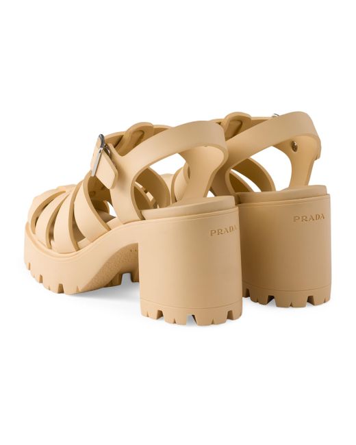 Upper with metal buckle Enameled metal triangle logo Rubber sole Lug tread Heel height 90mm / 3.5'' Leather-covered insole Imported 100% Ethylene-vinyl acetate. Lsd Rtw - Prada Rtw > Prada > Saks Fifth Avenue. Prada. Color: Beige Khaki. Size: 6.