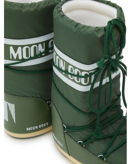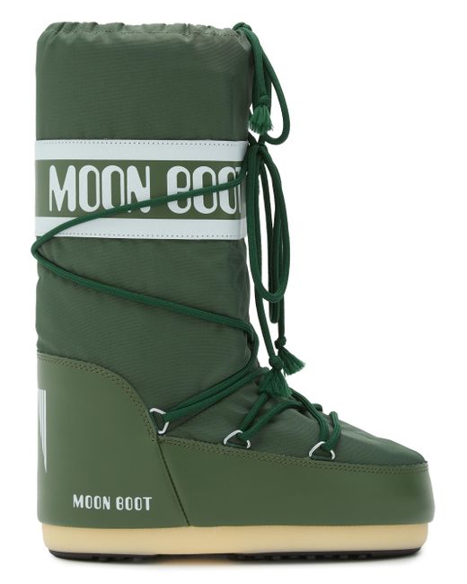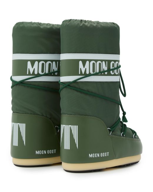 Designed for versatility, the Icon Nylon snow boots from Moon Boot feature a water-repellent upper and rubber tread sole with suction pads for superior traction in snowy conditions. The multisize foam lining ensures a snug fit, while the high-gloss PVC heel counter and trim add an elevated touch. Round toe Slips on Synthetic upper Nylon lining Cushioned insole Rubber sole Imported SIZE Shaft: about 10" Please note: These boots are designed with an ambidextrous fit and can be worn on either the left or right foot. Men's Shoes - Contemporary Shoes > Moon Boot > Saks Fifth Avenue. Moon Boot. Color: Forest Green. Size: 9.