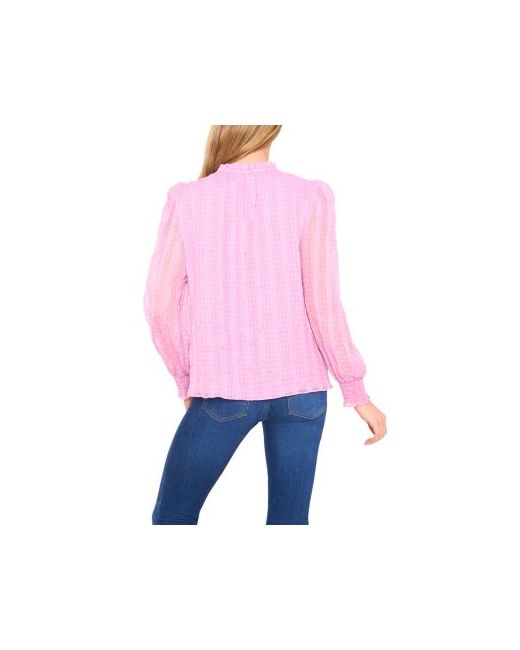 CeCe Smocked Cuff Ruffle Blouse.Color:Pink Horizon.Size:L.Material:100% polyester.Tops.