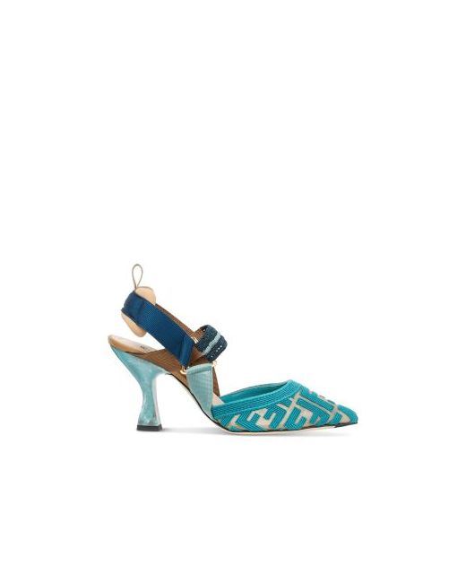 Fendi Women's Colibri Ff High Heel Slingbacks.Color:Blue.Size:6 US / 36 EU.Material:Polyamide/fabric upper, polyamide lining, leather sole.