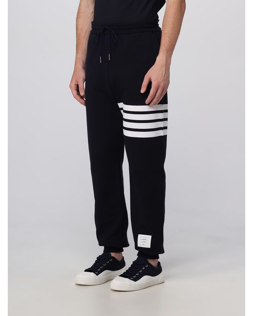Casual Style Regular Fit Stretch Cotton Regular High Waist With Drawstring 2 American Pockets Contrasting 4 Bar Stripes Detail Back Logo Back Slit Pocket Straight Leg Elasticated Ankle Cuff Logo Patch Applied In Contrast Dry Clean Only Made In Italy