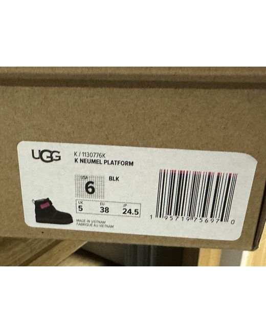 The UGG Neumel 'Black' Platform Boots in size 5 are a stylish and trendy choice for women. With a wedge heel and platform style, these boots provide both comfort and height. Made with 100% wool upper material, they are durable and warm, making them perfect for outdoor wear. The black colour and modern design by UGG make these boots a versatile addition to any wardrobe.