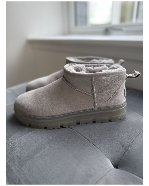 UGG Ultra Mini Boots in Campfire Grey Suede with clear sole and stitched tab at the back. SIZE UK 7 Brand New without tags or shoebox. Sold Out Style. RRP £145 Never been worn but have a slight mark on the top of each boot as shown in the photos but which may come out with suede/UGG cleaner. Only selling as I have purchased in a different colour and can’t justify keeping both!