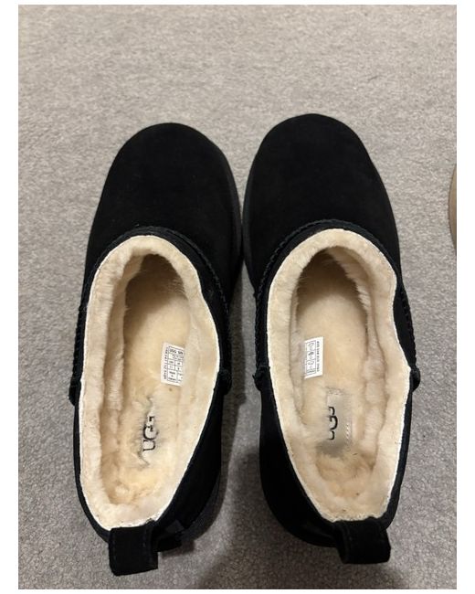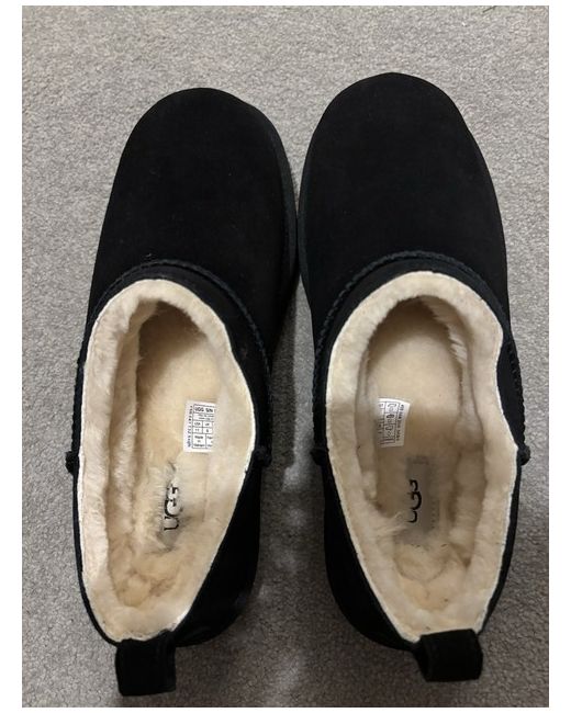 This UGG Women's Classic Micro Boot in Black, UK size 9, is a brand new ankle boot made with sheepskin lining for ultimate comfort. The suede upper material, with a standard shoe width, makes it suitable for all seasons - autumn, winter, spring, and summer. The classic UGG design and style of the micro boot make it a versatile and stylish choice for any woman's wardrobe.