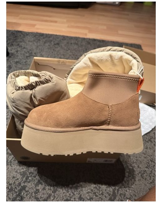The UGG Classic Mini Dipper Puffer Boot in Chestnut is a stylish and comfortable ankle boot perfect for casual occasions during the winter season. With a low heel height and flat heel style, this boot is practical for everyday wear. The suede upper material and rubber outsole provide durability and a high-quality finish. The signature UGG Classic Mini Dipper Puffer design, featuring a round toe shape, makes this boot a must-have for women looking for a fashionable yet functional footwear option.