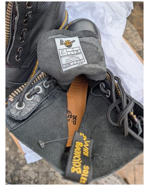 The product is a pair of (I think Sinclair) Dr Martens boots (lost original box) in UK size 4 (EU 37), made from soft black leather with a round toe shape. They feature a zip and/or lace closure, take your pick. If you want just the laces, you can remove the zips. Brand new. Unworn.