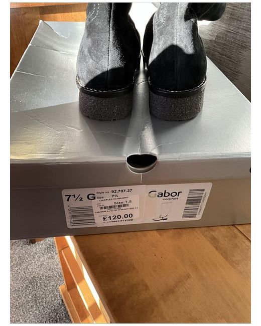 The Gabor Women's Black suede Boots in size 7.5G are a stylish and comfortable option for casual occasions. With a knee-high shaft, zip closure, and flat heel, these boots offer a sleek and practical design. Made from black suede with a block heel, they are perfect for adding a touch of sophistication to any outfit. The Gabor brand is known for quality and durability, making these boots a reliable choice for any woman's wardrobe. Original price £165.00.