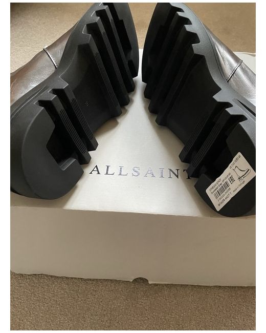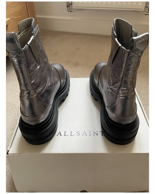 The AllSaints Othello Boots in size 7 are a stylish and versatile choice for casual wear during the winter season. With a comfortable ankle shaft style and round toe shape, they offer a modern and trendy look in a gunmetal grey colour. Made from high-quality leather, these boots from the reputable brand AllSaints are perfect for adding a touch of sophistication to any outfit. Ideal for women who appreciate both fashion and comfort, these boots are a must-have for any winter wardrobe.