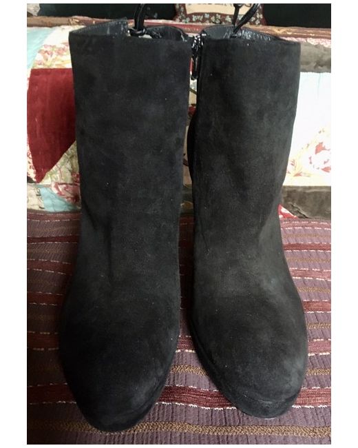 STUART WEITZMAN 'Platform Glove' Ankle Boots/Booties. Genuine suede. 2.5 cms platform. Self tie leather laces at back. Colour: Black. Size: EU 40.5 US 10 which equates roughly to a UK 7.5.