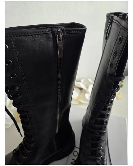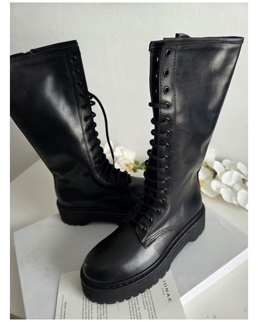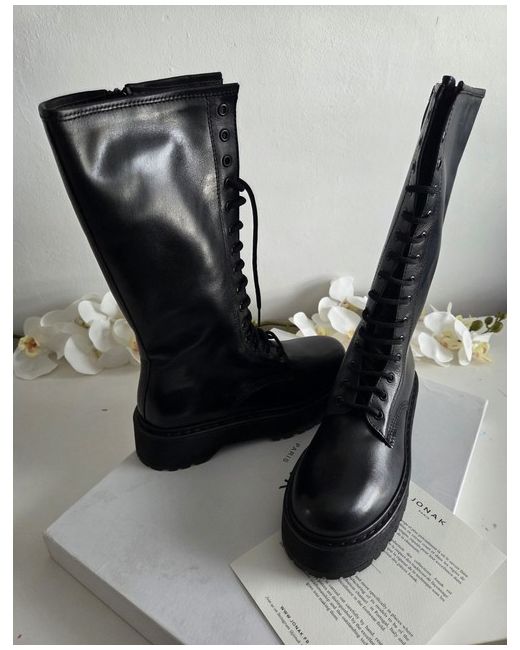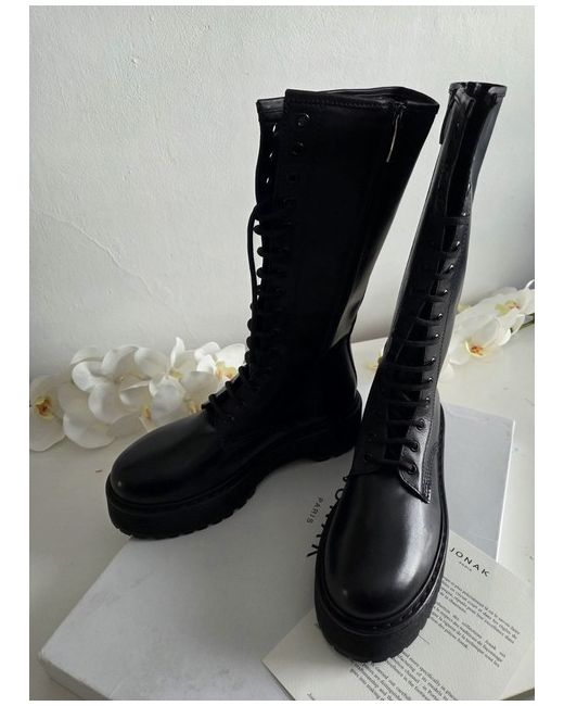 The Jonak Leather Combat Boots in UK Size 8 for women offer a stylish and durable footwear option. Made from black leather with a rubber outsole, these boots are designed to withstand wear and tear while providing a comfortable fit. The combat style adds a trendy edge to any outfit, making them a versatile and fashionable choice for everyday wear. Perfect for adding a touch of edgy sophistication to any wardrobe.
