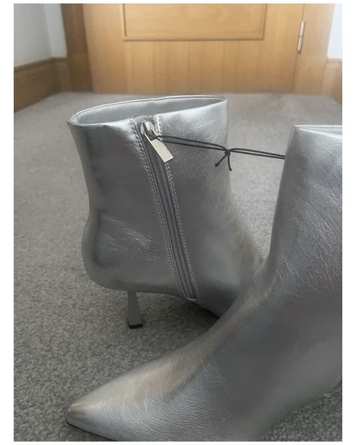 Women's Silver Pointed Ankle Boots 8