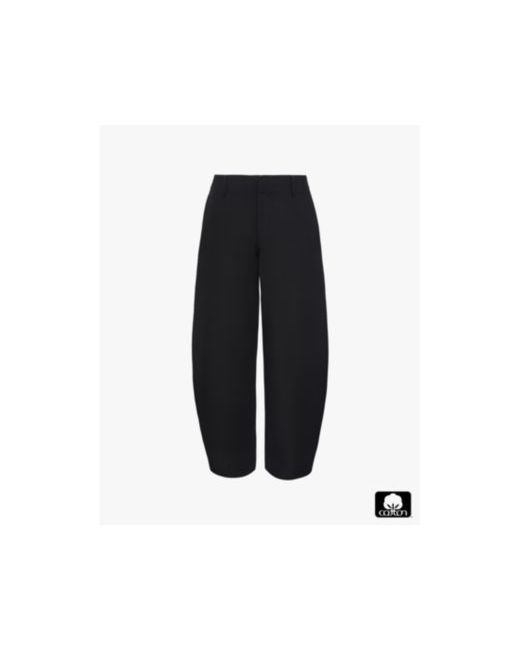 This cotton-blend pant is tailored to round the hips and taper in at the hems, creating its billowy shape. It has a mid-rise waist with belt loops, on-seam pockets and a zip-fly closure.