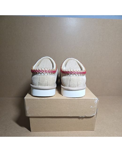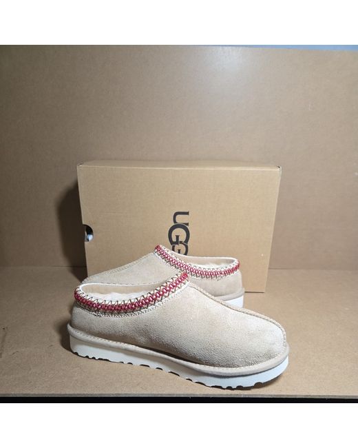 The UGG Tasman slipper is a stylish and comfortable option for women looking for a casual and warm shoe for winter. Featuring a round toe, low heel, and slip-on closure, this brown suede slipper with the signature UGG logo accent is perfect for lounging around the house or running quick errands. The wool insole provides added comfort, making it the ideal choice for all-day wear. Perfect for those seeking a blend of style and practicality in their footwear.