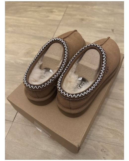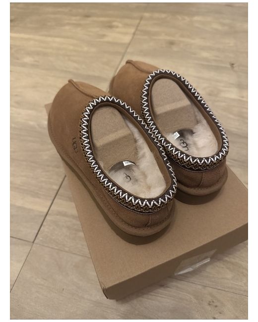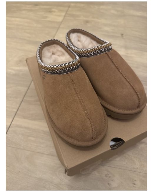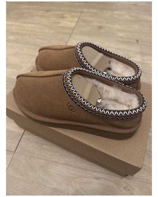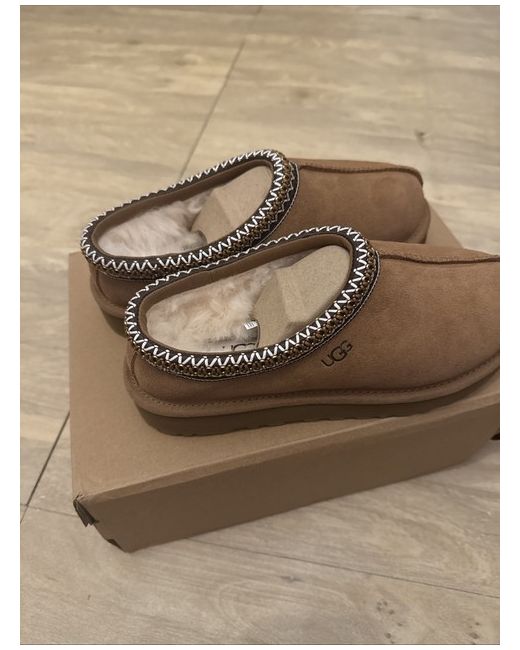 The UGG Tasman slippers are a stylish and comfortable option for women, featuring a suede upper in a rich brown colour. With a UK shoe size of 5, these slippers from the renowned UGG brand offer a cosy fit for lounging at home. The classic slipper style and quality materials make them a popular choice for those looking for both style and comfort in their footwear.