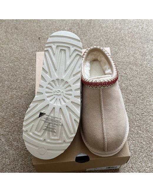 Brand new with tags and box ✅ Rrp £125 ✅ 100% authentic have proof of purchase ✅ Will send asap ✅ The product is a pair of Ugg Tasman slippers in a size UK 5, which translates to a US size 7. The slippers feature a round toe shape, slip-on closure, low heel height, and are accented with the brand's logo. Made from beige suede, they are designed for casual occasions and offer comfort, making them perfect for the winter season. The Ugg Tasman style and slip-on design make them a convenient and stylish option for women looking for a comfortable and cosy footwear choice.