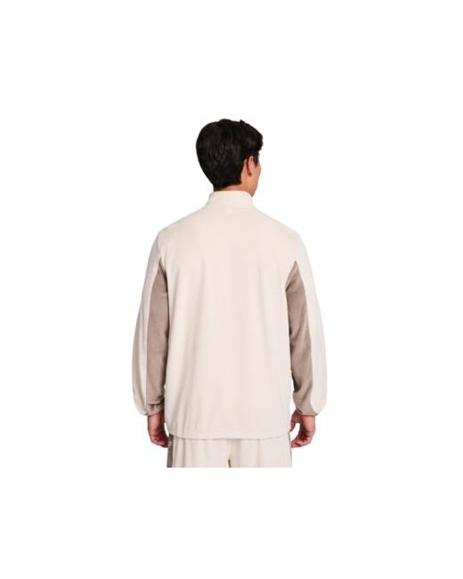 Display your sporty side by wearing this velour jacket by Reebok, featuring long sleeves and elasticized cuffs. An embroidered stacked logo on the left chest and an enamel-coated zipper add distinct brand details.