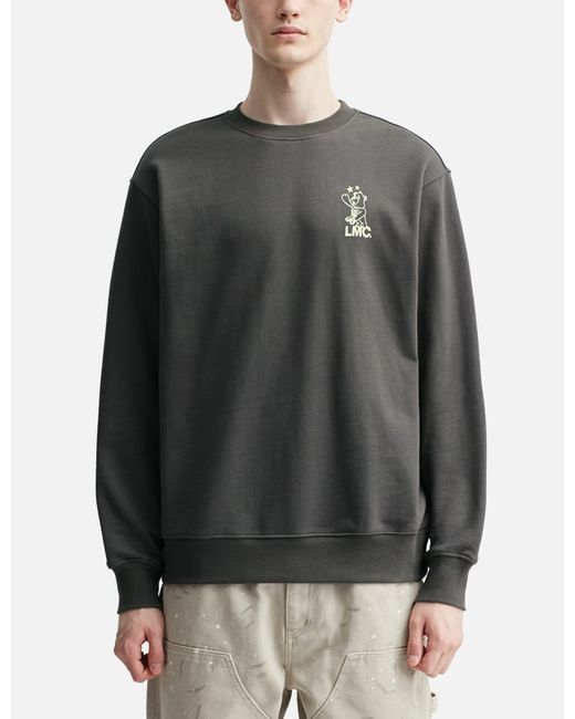 LMCTelescope Bear SweatshirtRibbed crewneck, cuffs and hemLMC telescope bear print on front and backColor: Charcoal