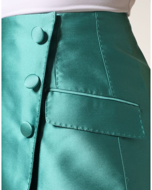 DOLCE & GABBANA Gorgeous brand new, 100% Authentic Dolce & Gabbana skirt features a vibrant green hue crafted from smooth polyester. The high waist and mini length create a flattering, youthful silhouette with a refined, modern edge. Model: High Waist Mini Color: Green Material: 85%PL+15%SE Int.: 08%EA+92%SE Zipper closure Logo details Made in Italy Very exclusive and high craftsmanship Measurements: Waist: 64 cm Total length: 45 cm