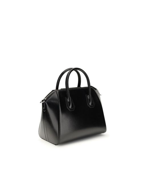 The Antigona small leather Box Handbag by Givenchy is a refined and versatile accessory made of fine Box calfskin. The zippered closure provides security and practicality, while the adjustable and removable leather shoulder strap offers the option of wearing it by hand or on the shoulder. The distinctive detail is the pentagonal applique with the GIVENCHY signature embossed in gold, which lends an elegant touch. Metallic details in a gold finish add an extra touch of luxury. Inside, a large main compartment, two flat pockets and a zippered pocket provide space and organization, making this bag not only stylish but also functional. Season: SS26 Dimension: 28x28x16 Composition: 100% Calf Leather Bos Taurus