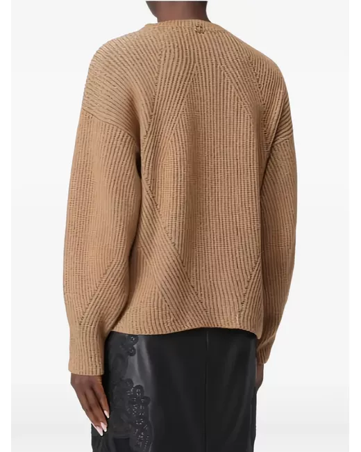 alpaca ribbed knit round neck long sleeves gold-tone logo detail shoulder detail