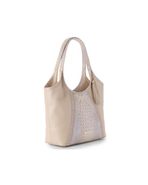 Boasting a vintage-inspired feminine silhouette, this textured tote from Brahmin features an easy key clip closure and a convenient back slide-in pocket. The spacious yet refined design makes it a go-to for daily use.