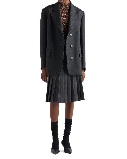 Menswear fit Lined Notch lapel Front button closure Straight three-button sleeves Flapped patch pockets Knit triangle logo Imported 100% fleece wool. Lsd Rtw - Prada Rtw > Prada > Saks Fifth Avenue. Prada. Color: Grey. Size: 0.