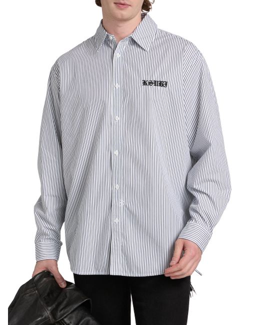 This Haunted striped button-front shirt from Ksubi is crafted of cotton and printed with signature graphics on the chest and back. Spread collar Long sleeves, button cuffs Shirttail hem Button-front closure 100% cotton Dry clean Imported SIZE & FIT About 29" from shoulder to hem Model measurements: 6'2" tall, 40" chest, 31" waist Model is wearing a US size Medium. Mens Denim & Contemp - Contemp Denim And Bottom > Ksubi > Saks Fifth Avenue. Ksubi. Color: Assorted. Size: Small.