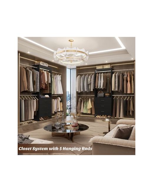 Are you tired of cramped closets and tangled hangers? Our walk in closet system is designed to make organizing effortless, offering stylish, spacious, and versatile storage to minimize mess. This closet rack features 3 wooden drawers and 4 adjustable hanging rods, each supporting up to 80 lbs, accommodating 30-50 garments. Adjustable width accommodates closet spaces from 2 to 8 feet, meeting all your storage needs and making it easy to access your favorite items.