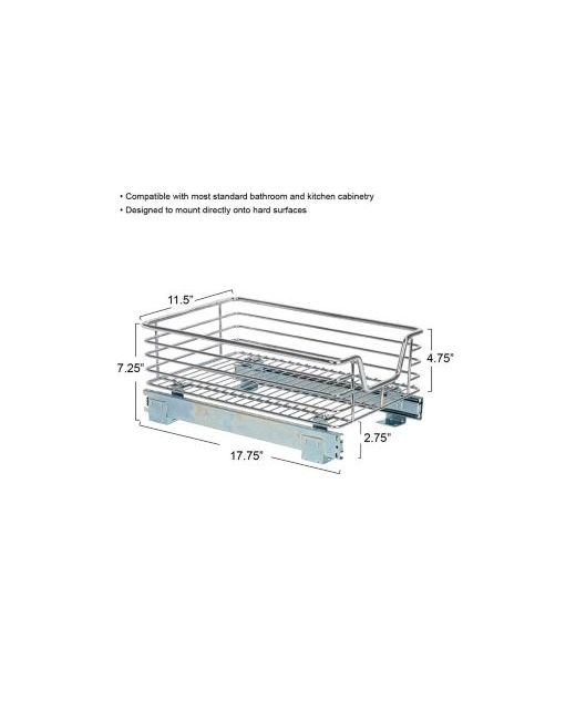 This innovative organizer is designed to optimize cabinet space and keep essentials neatly organized. Crafted from durable chrome-plated steel, it offers both style and durability. This cleverly designed organizer provides ample storage space to accommodate a variety of items. From cans and dry goods to cleaning essentials, belongings can be conveniently stored and accessed. This organizer is compatible with most standard bathroom and kitchen cabinetry. It is specifically designed to mount directly onto hard surfaces, ensuring a secure and stable installation. Made from durable, chrome-plated steel, this Glidez organizer is built to withstand heavy use. It offers a maximum weight capacity of 33 pounds, providing a sturdy and reliable storage solution. Installing it is a simple process, as all the necessary mounting hardware is included. Follow the provided instructions, and the organizer will be ready for use in no time.