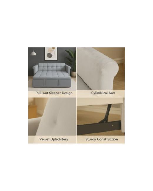 Add timeless charm and modern functionality to any space with this 2-seater velvet loveseat sleeper. Upholstered in soft, high-density velvet with elegant scroll arms and tufted cushions, this compact couch easily transforms into a pull-out bed-perfect for small apartments, guest rooms, or home offices. The backrest adjusts to 6 angles plus a flat layout, ideal for lounging, reading, or sleeping. A smooth sliding mechanism makes switching from sofa to sleeper hassle-free. With a side storage pocket and sturdy wood frame, it s a stylish solution for space-conscious living.