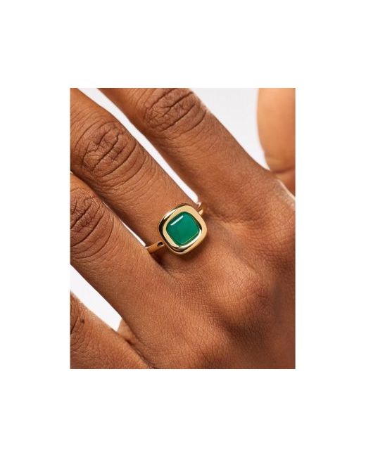 The search for the perfect pop of color ends with this statement ring. Plated in 14k gold, this timeless ring features a round square-shaped design with a deep green onyx stone in the center.
