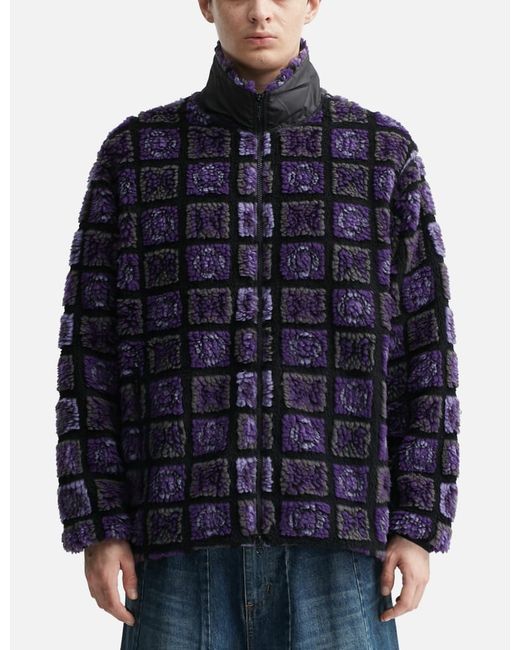 NeedlesFur JacketMade of lightweight polyesterOversized fitStand collarTwo-way YKK zip closure3D papillon check pattern throughoutSide zip pocketsRibbed cuffsDrawcord hemMade in JapanColor: Purple / Black