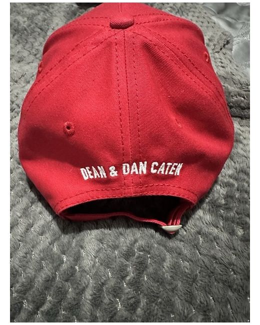 The Men's Dsquared2 ICON Baseball Cap is a stylish and casual accessory perfect for the summer and spring seasons. Made from cotton with a canvas fabric type, this red cap features an adjustable strap for a comfortable fit. Branded with the designer label Dsquared2, this baseball cap is a must-have for men looking to add a touch of designer flair to their outfit. Made in China, this high-quality cap is a versatile addition to any man's wardrobe.