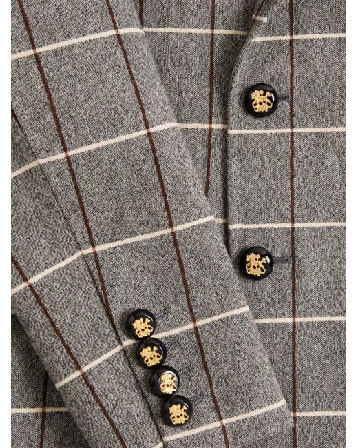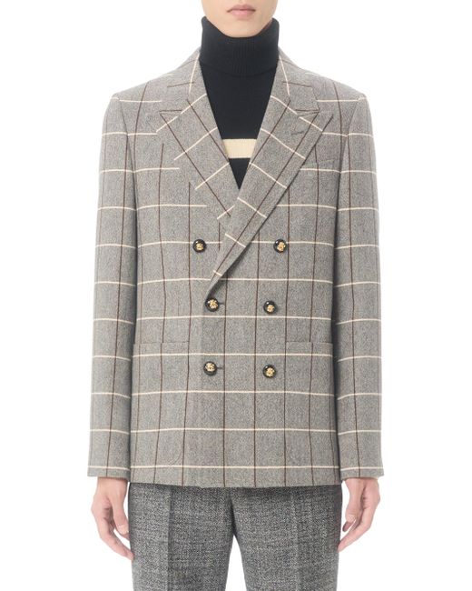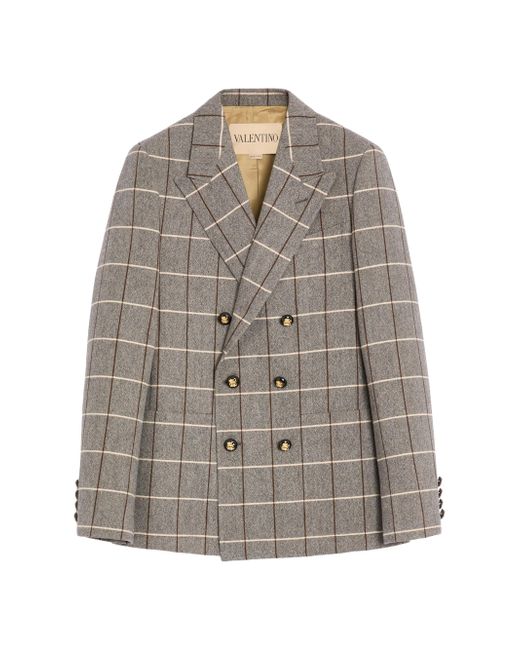 Valentino doublebreasted wool jacket with check pattern. Slim fit Lined Full canvas construction Allover check pattern One pocket on the left breast as worn Two front patch pockets Composition: 100% Wool Lining: 100% Viscose Length: 74 cm / 29.1 inches from the back of the neck in an Italian size 46 The model is 187 cm / 6'1'' tall and wears an Italian size 46 Made in Italy. Lsd Rtw - Valentino Rtw > Valentino Garavani > Saks Fifth Avenue. Valentino Garavani. Color: Grey. Size: 42.